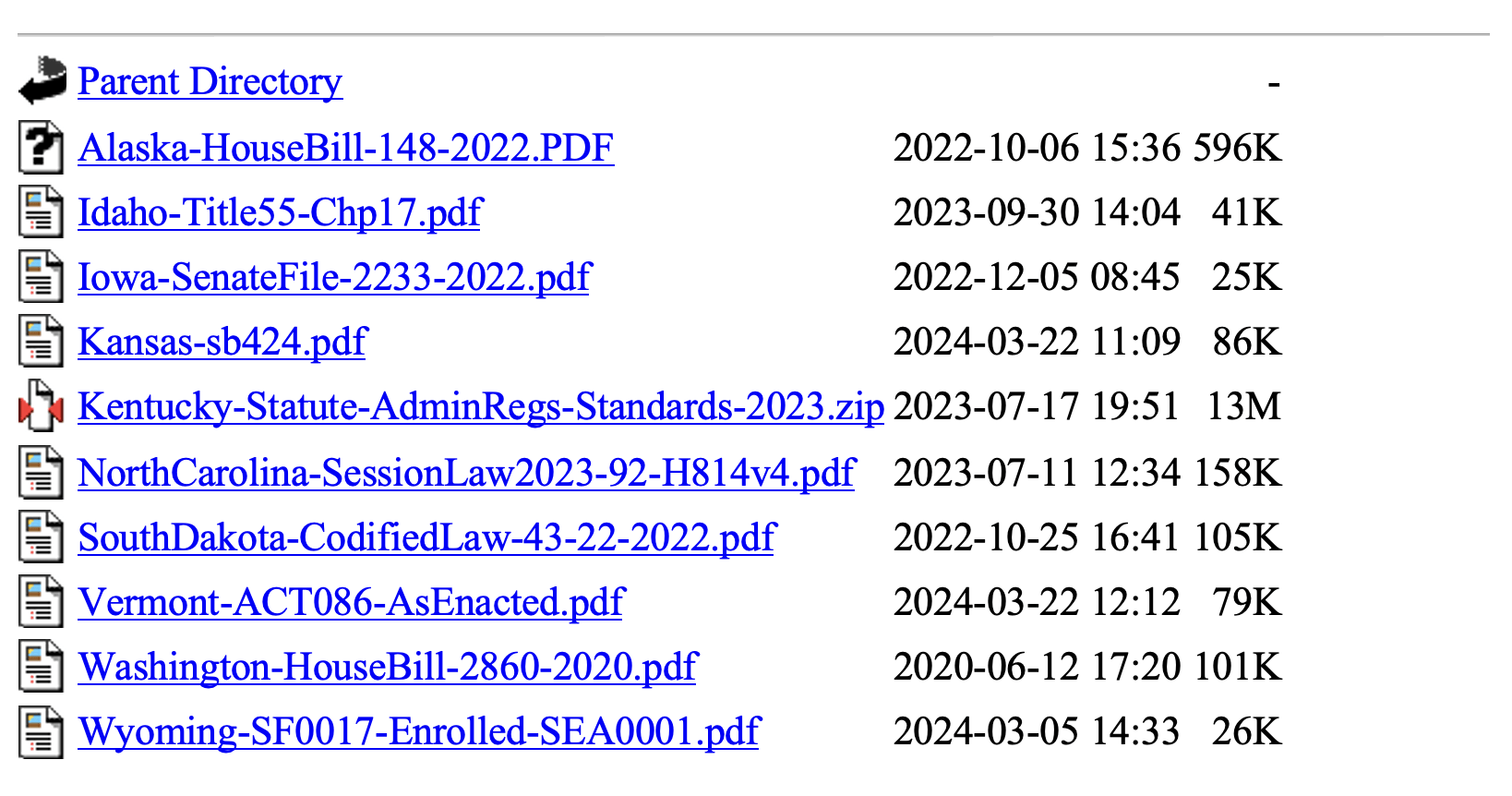 Per personal communication with Michael Dennis, Ph.D., NGS SPCS2022 Manager, as of June 26, 2024, the following 12 states have have enacted into law NSRS modernization: Alaska, Idaho, Iowa, Kansas, Kentucky, Louisiana, Nebraska, North Carolina, South Dakota, Vermont, Washington, and Wyoming.
