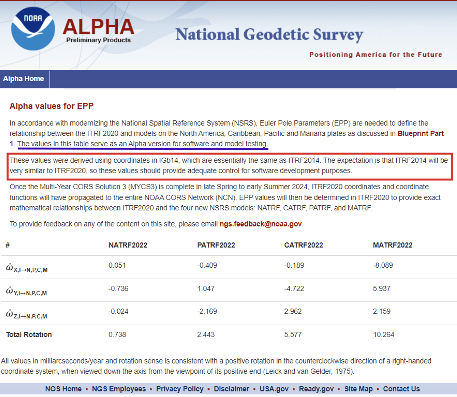 The Alpha EPP site provides the Euler Pole Parameters (EPP) that are needed to define the relationship between the ITRF2020 and models on the North America, Caribbean, Pacific and Mariana plates as discussed in NGS’s Blueprint Part 1 document.