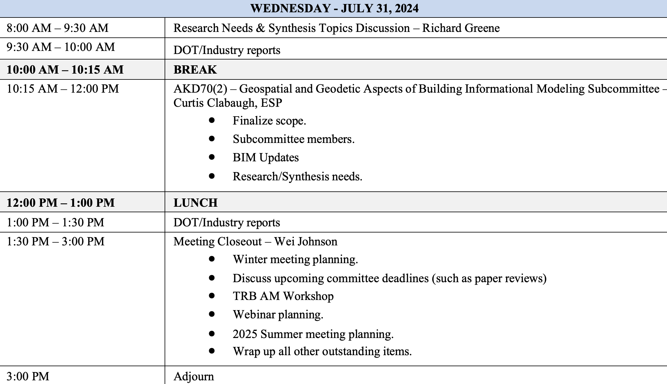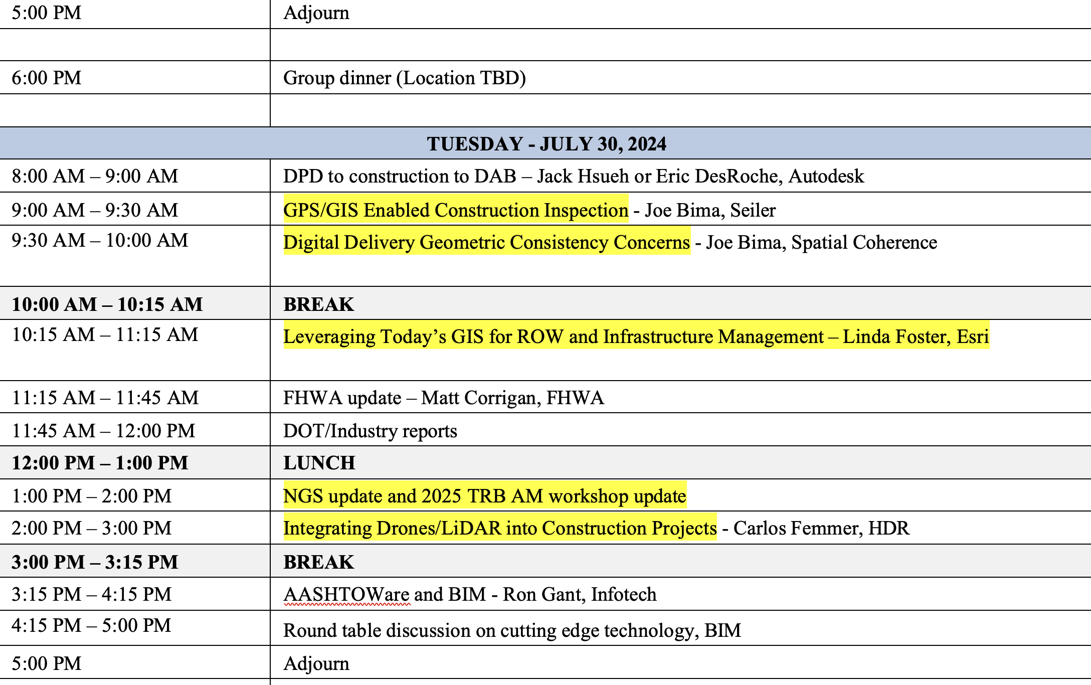 I always learn something new at these meetings and continue to build new relationships expanding my professional network. These meetings are open to anyone, so I would encourage everyone to learn more about the TRB ADK70 Standing Committee on Geospatial Data Acquisition Technologies. Please contact Wei Johnson for more information about getting involved with the committee.