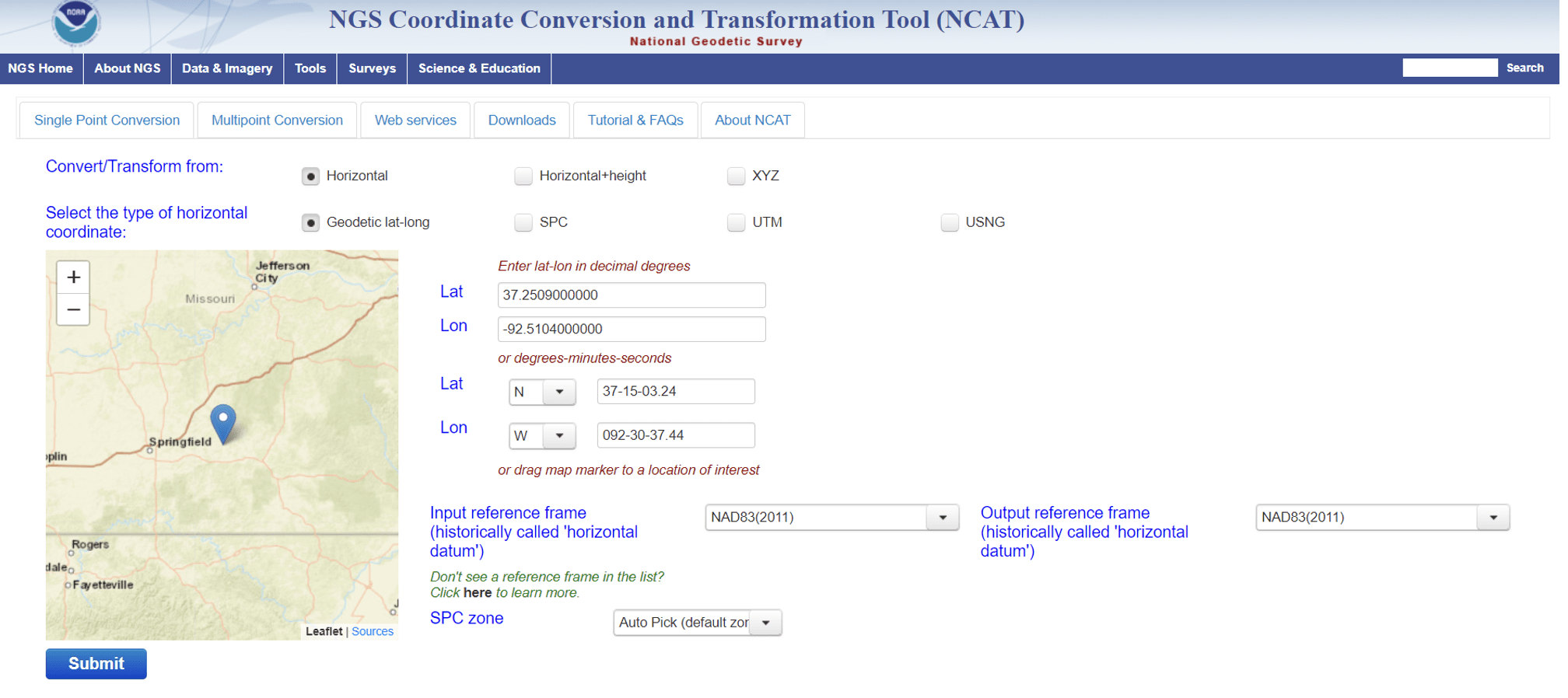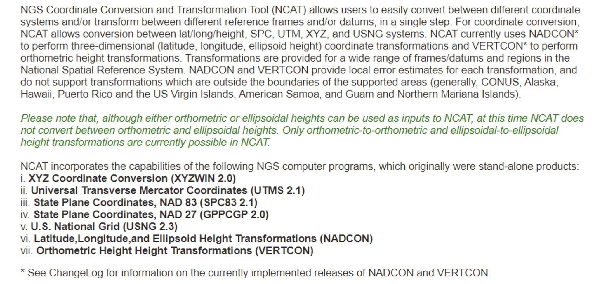 NGS has developed web-based applications to convert coordinates between different coordinate systems and transform between different reference frames and/or datums. See the box titled “NGS NCAT Web Tool.” I described the NCAT web tool in my October 2019 and September 2023 GPS World newsletters.